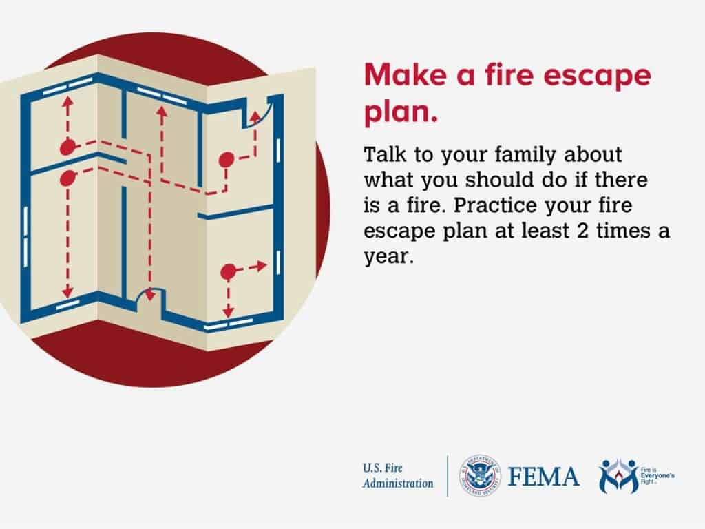 Fire can spread rapidly through your home, leaving you as little as one or two minutes to escape safely once the alarm sounds. Pull together everyone in your household and make a plan. Walk through your home and inspect all possible exits and escape routes. Households with children should consider drawing a floor plan of your home, marking two ways out of each room, including windows and doors. Also, mark the location of each smoke alarm. Here are some tips for helping you with your home fire escape plan!